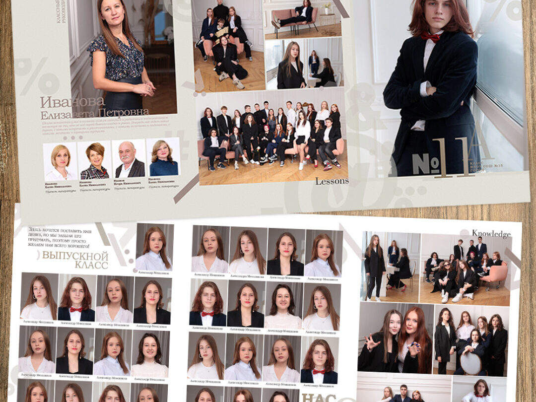 Трюмо ЛИСЫ ШКОЛА Есть в двух вариантах - для общей верстки на весь класс и для индивидуальной - с портретами на обложке и внутри. Шаблон для Фотофиеры. Обаятельный лис-учитель и славные лисята-ученики — герои этого дизайна. Он отлично подойдёт для младших классов, а также для выпускников детского