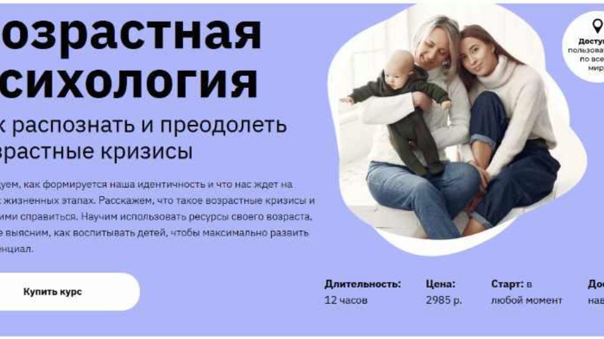 Исследуем, как формируется наша идентичность и что нас ждет на разных жизненных этапах. Расскажем, что такое возрастные кризисы и как с ними справиться. Научим использовать ресурсы своего возраста, а также выясним, как воспитывать детей, чтобы максимально развить их потенциал.