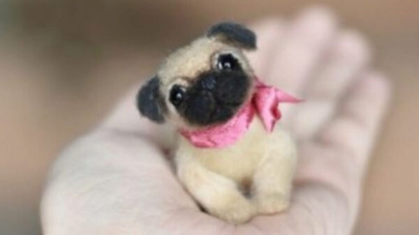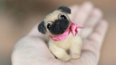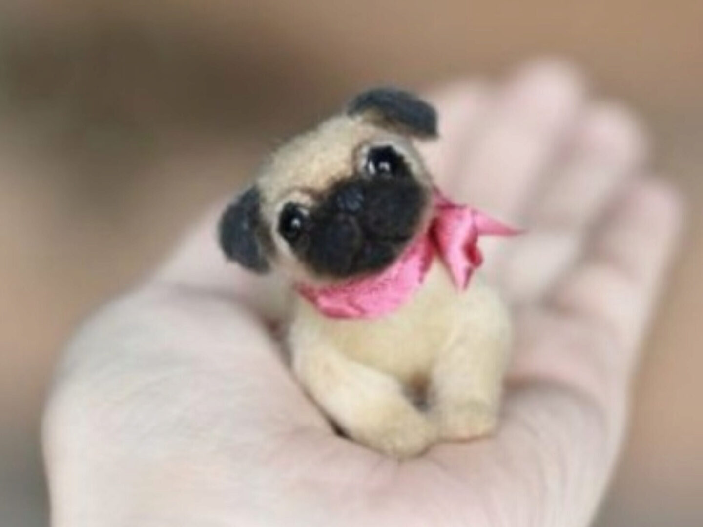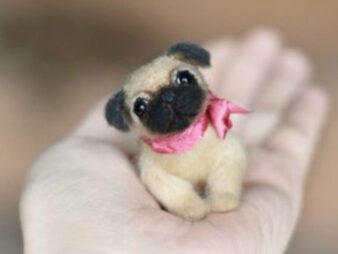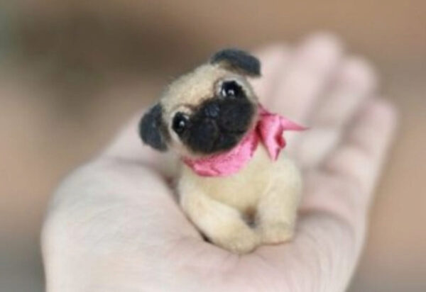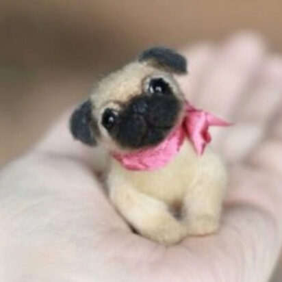 Размер мопса при указанных материалах: высота-5,5см, длина около 5,5 см.