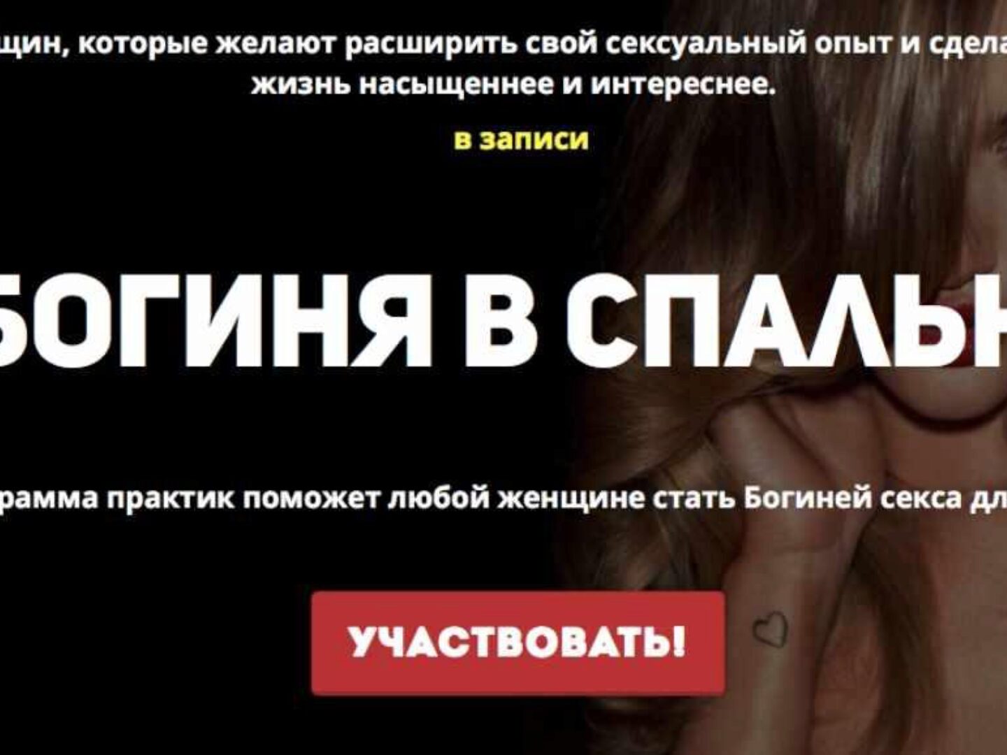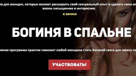 Обучение, которое перевернёт твоё представляете о сексе и отношениях навсегда! ЭТОТ КУРС ДЛЯ ТЕБЯ, ЕСЛИ... Ты хочешь обрести уверенность в себе и поднять самооценку Ты узнаешь все секреты, как стать богиней в жизни и в сексе Секс стал скучным и однообразным Ты научишься незабываемым техникам, что