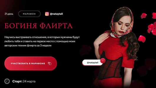 Курс Марафон «Богиня флирта». Тариф Я с поддержкой, автор nataytali. ПРИВЕТ, Я НАТА,