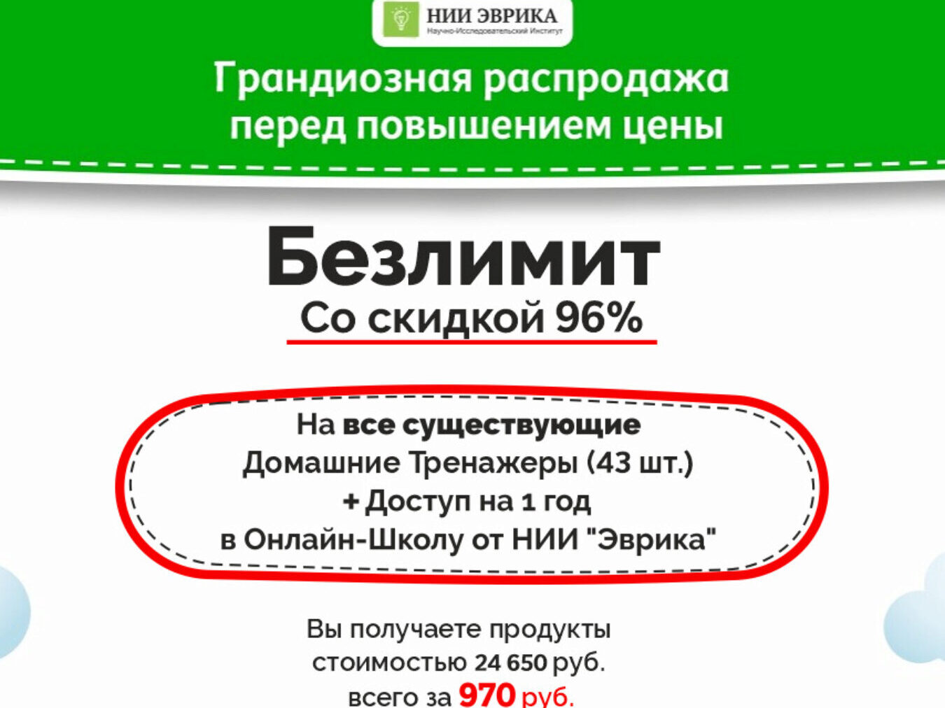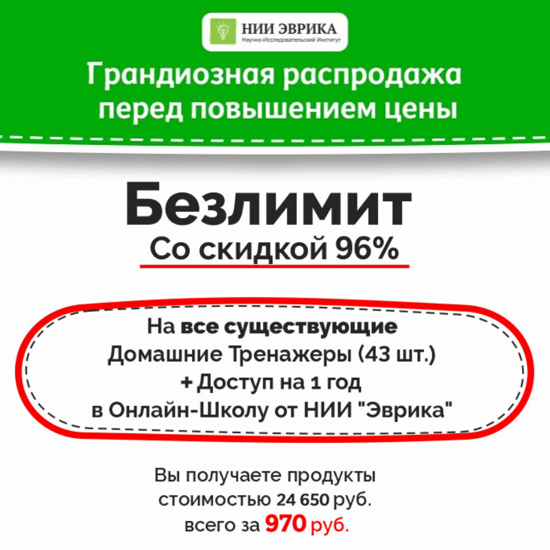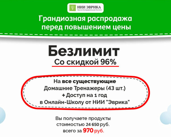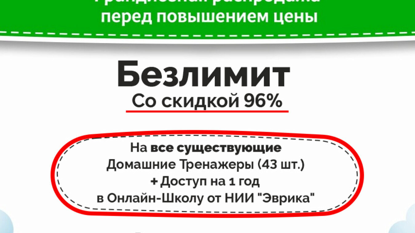 Почему курс [НИИ эврика] Безлимит на все Домашние Тренажеры стоит всего 1110 ₽?