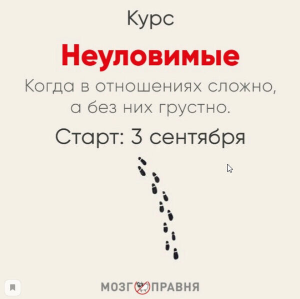 Курс «Неуловимые» - для тех и о тех, кому в отношения сложно, а без них грустно. Если вы сбегаете от отношений, изменяете, боитесь вступать в отношения, сталкиваетесь с тем, что никто не нравится, или находитесь в отношениях с вечно ускользающим, недоступным партнером - этот курс для ваc.