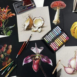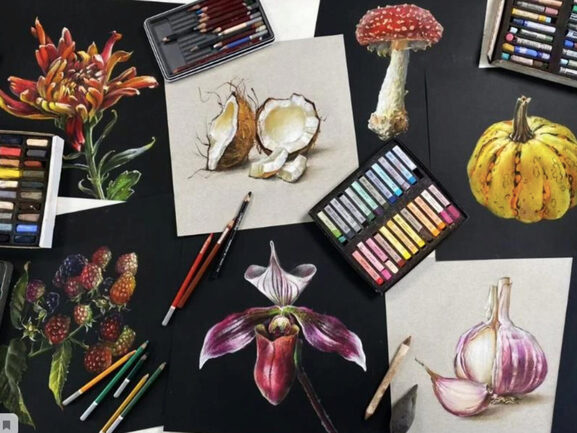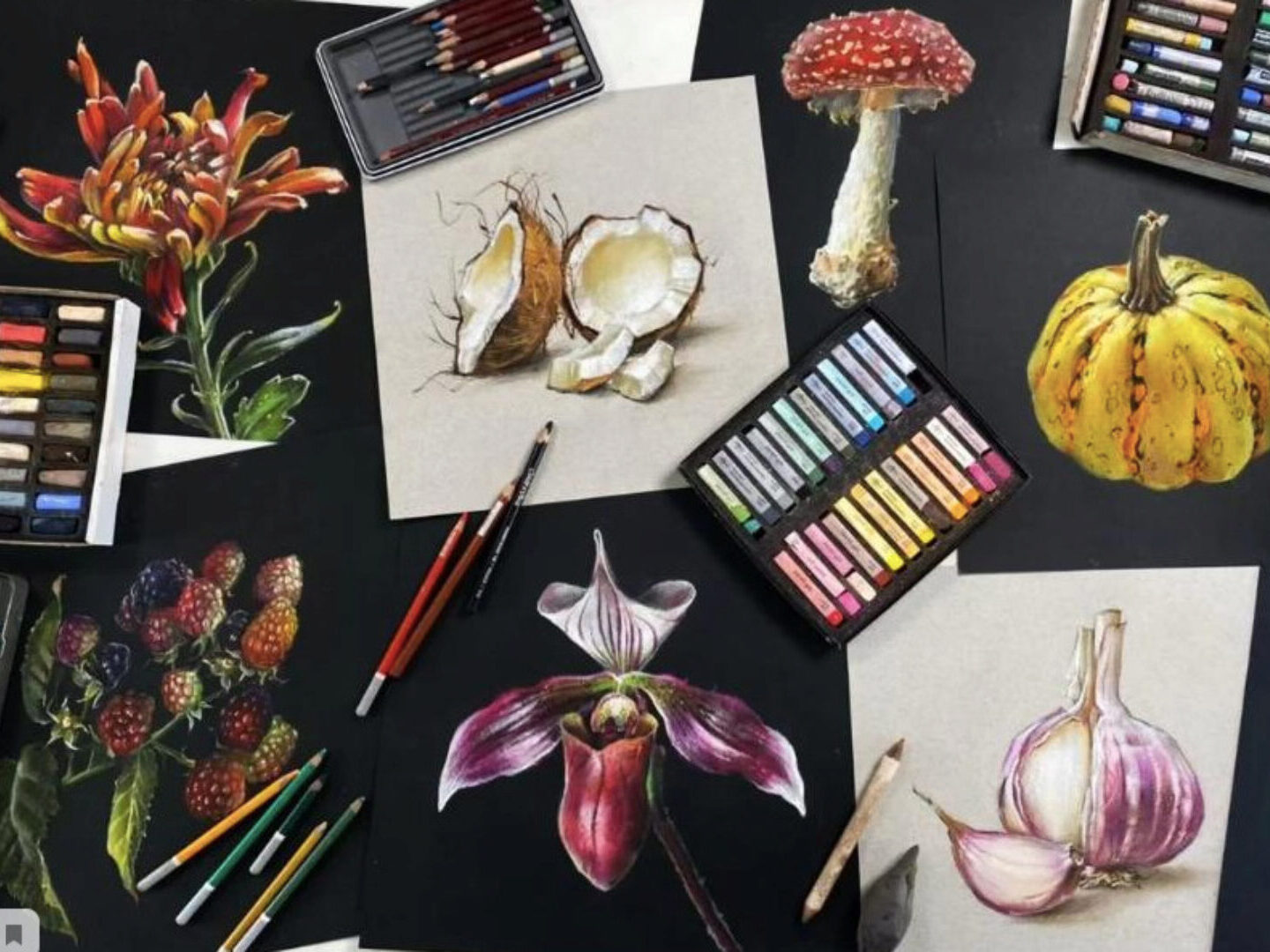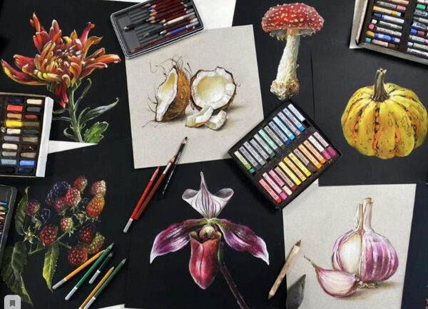 На курсе Ники Сабрековой «Ботаника пастелью» вы познакомитесь с приемами и техниками, которые помогут показать красоту растений. Мы будем работать с разными референсами — от привычных (мухомор, ежевика, чеснок) до экзотических (орхидея, кокос). Фотографии подобраны таким образом, чтобы вы научились показывать всевозможные формы, фактуры и расцветки.