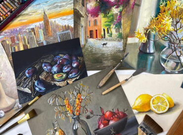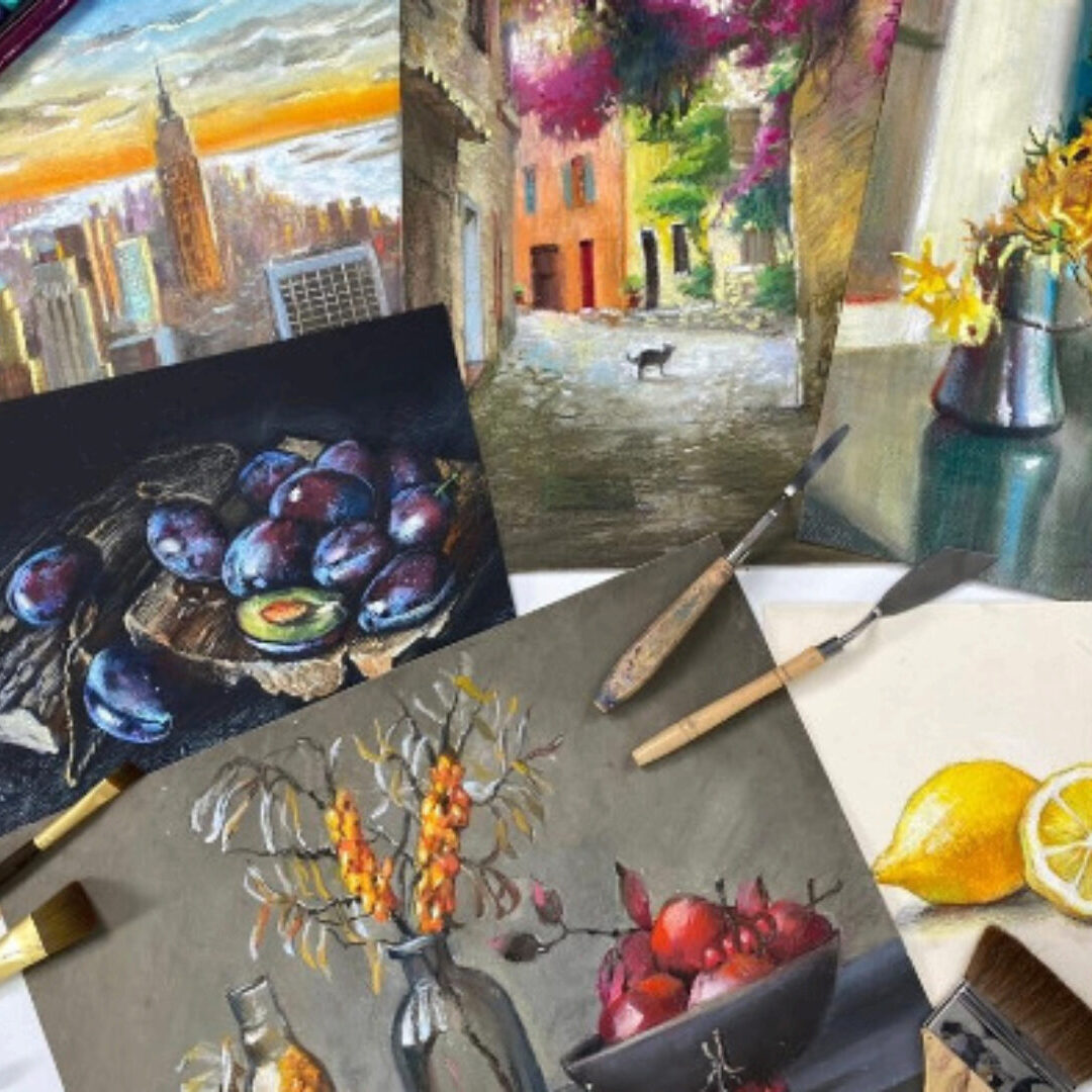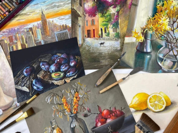 Курс от Ники Сабрековой и Художник Online, на котором вы научитесь работать масляной пастелью в жанрах пейзажа и натюрморта.