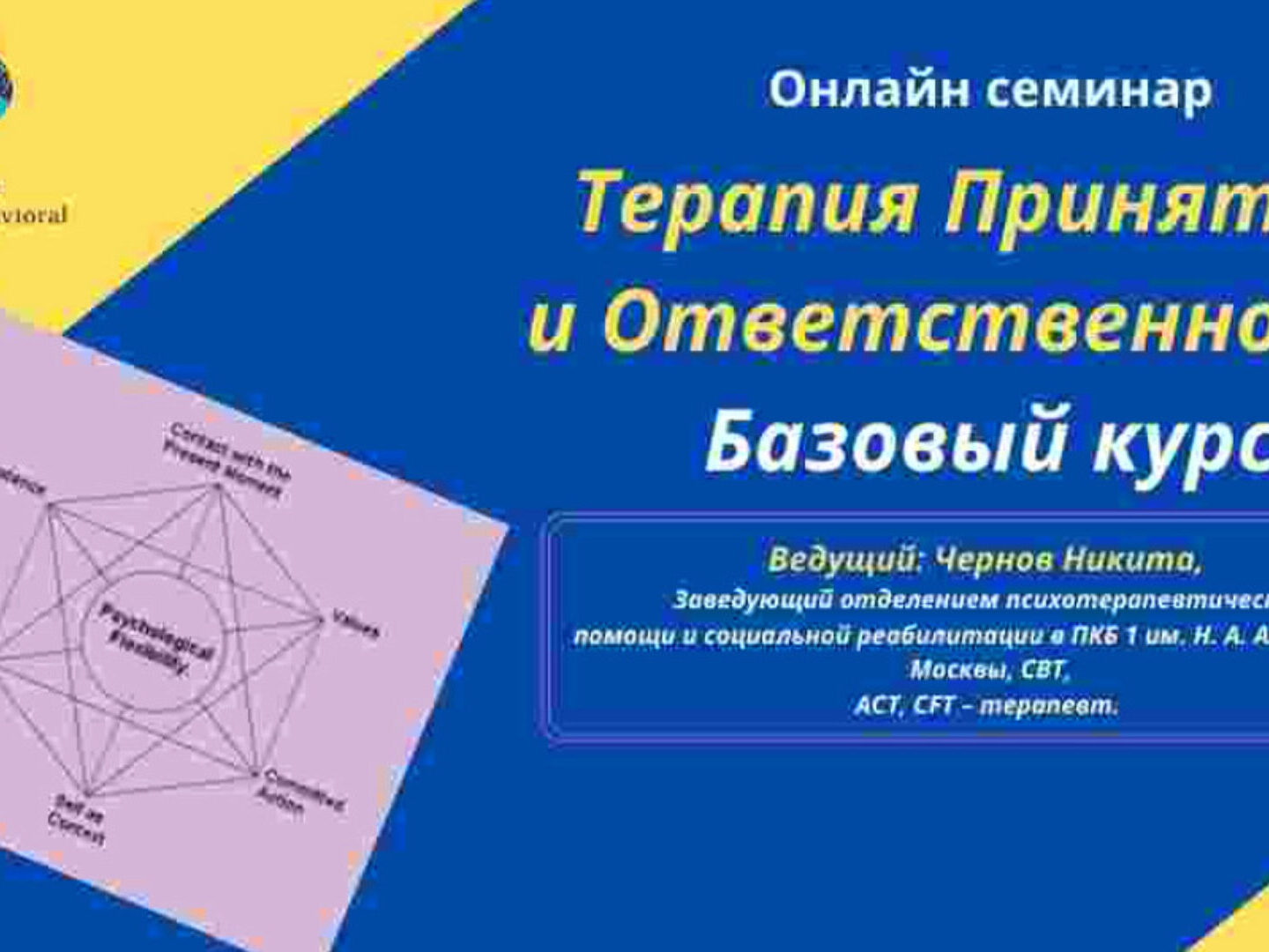 В ходе семинара будут подробно рассмотрены базовые принципы ACT, наравне с обширным обзором используемых в данном подходе методов и техник.
