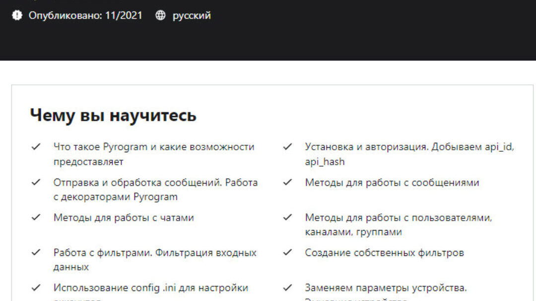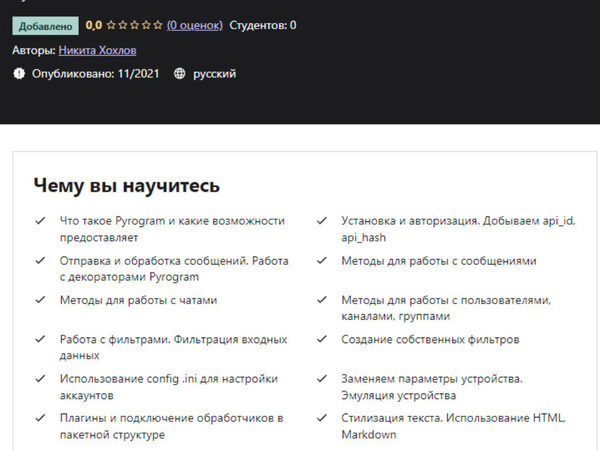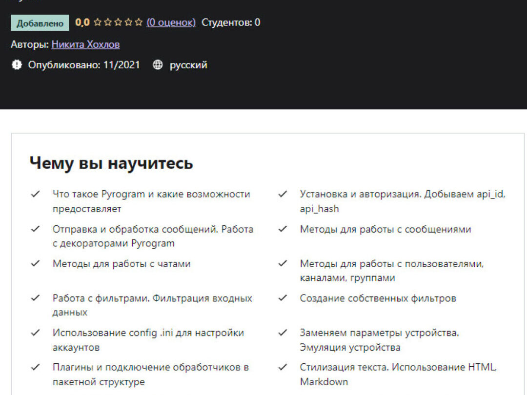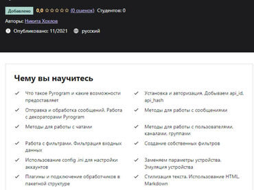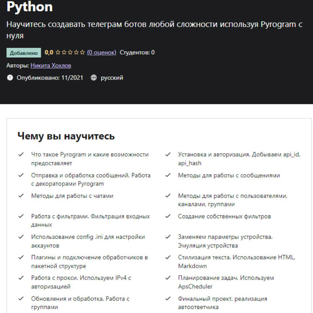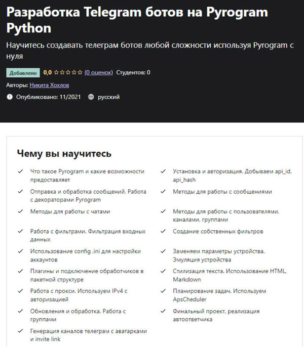 Никита Хохлов «Разработка Telegram ботов на Pyrogram Python» — Udemy слив скачать