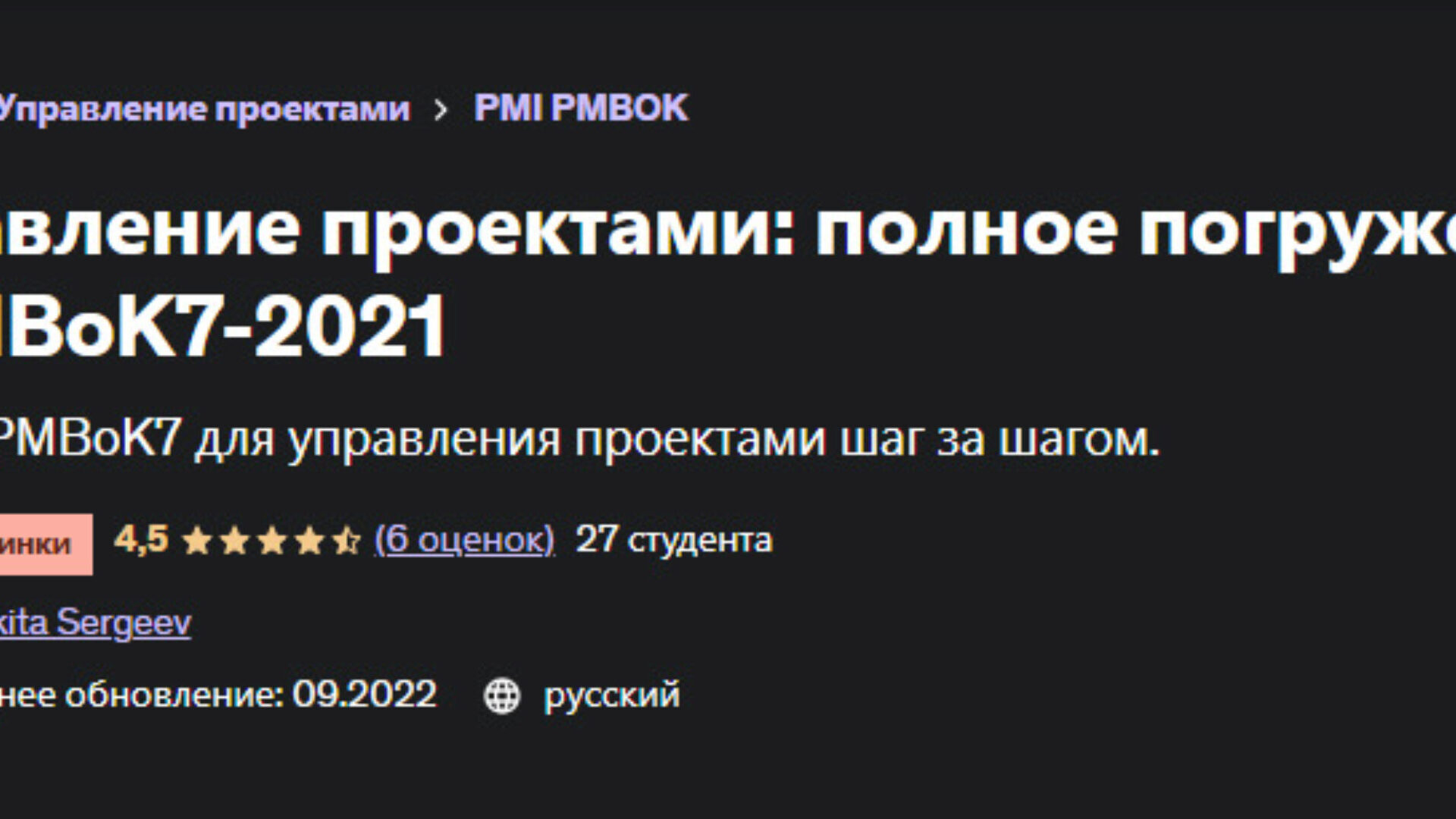 Nikita Sergeev, Никита Сергеев «Управление проектами: полное погружение в PMBoK7-2021» — Udemy слив скачать
