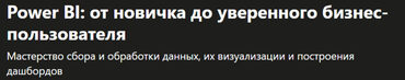 Чему вы научитесь: Более 90 лекций, без заданий (задания были интерактивной частью платформы, их не скопировать) Чистить, приводить в порядок, трансформировать и преобразовывать данные Создавать связи и строить модели данных Выводить сводные таблицы и диаграммы из многих таблиц, используя