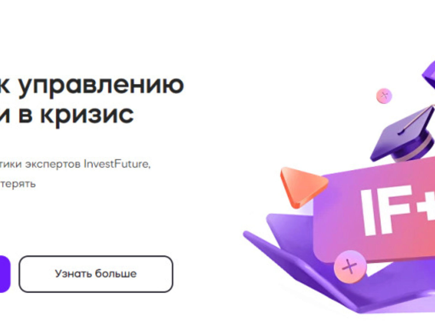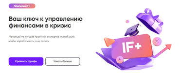 Ваш ключ к управлению финансами в кризис Используйте лучшие практики экспертов InvestFuture, чтобы зарабатывать, а не терять: 1. Обучающие курсы «Погружайтесь в мир инвестиций с нуля, или изучайте продвинутые курсы» Короткие уроки 15-20 минут, комплексная программа без «воды». 2. Аналитика Изучайте