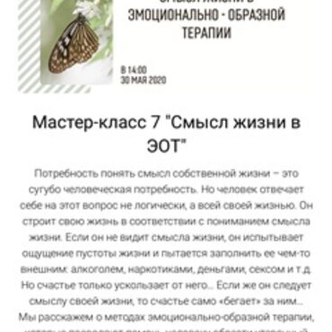 Скрытый текст. Доступен только зарегистрированным пользователям. Онлайн-курс «Зазеркалье: вторая ступень обучения эмоционально-образной терапии» В программе: Теория и практика эмоционально-образной терапии; 19 видео-уроков с домашними заданиями (2 урока в неделю, каждый видео урок содержит