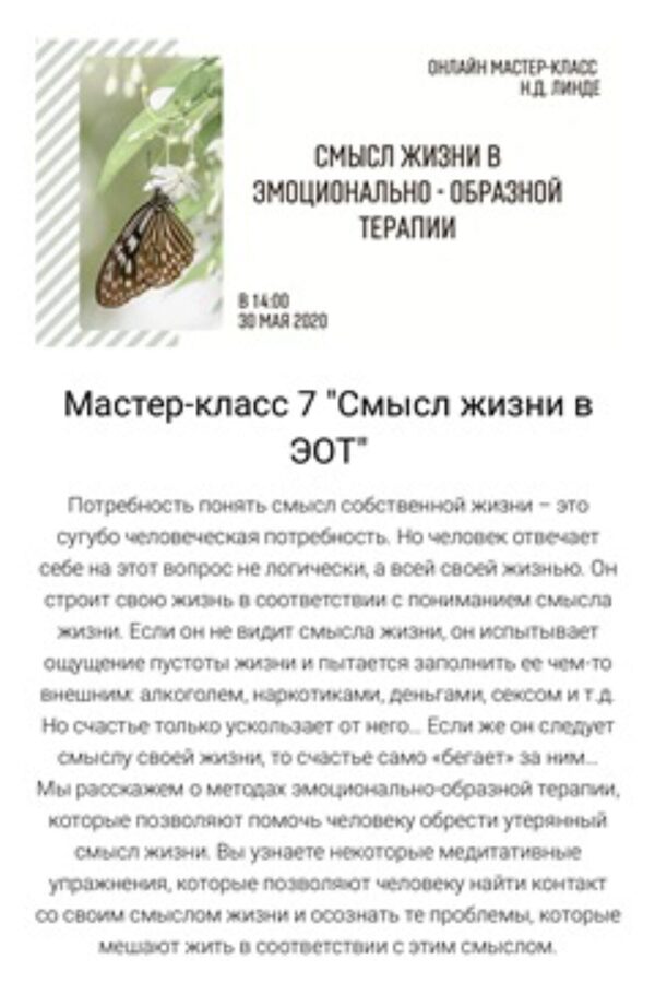 Отзывы о курсе «Смысл жизни в Эмоционально-Образной Терапии» от Николая Линде