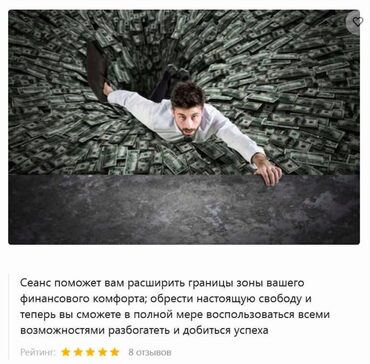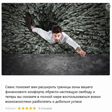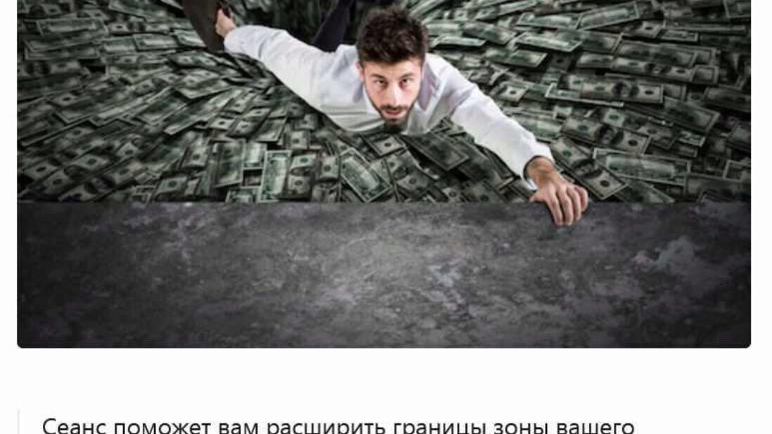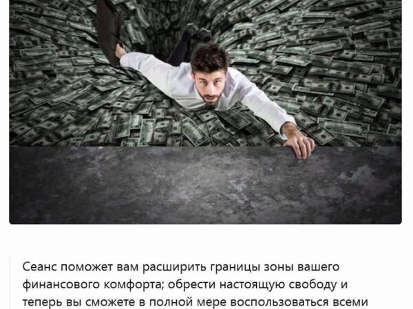 Сеанс гипноза «Перестаньте бояться денег» разработан квалифицированными психологами. Он поможет вам расширить границы зоны вашего финансового комфорта. При регулярном прослушивании данного сеанса эриксоновского гипноза и сопутствующем расслаблении Вы начнёте замечать, что внутри вас происходят существенные изменения. Вы заметите, что: