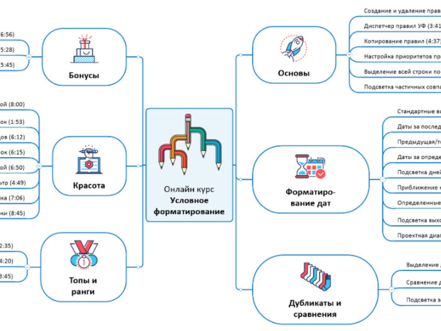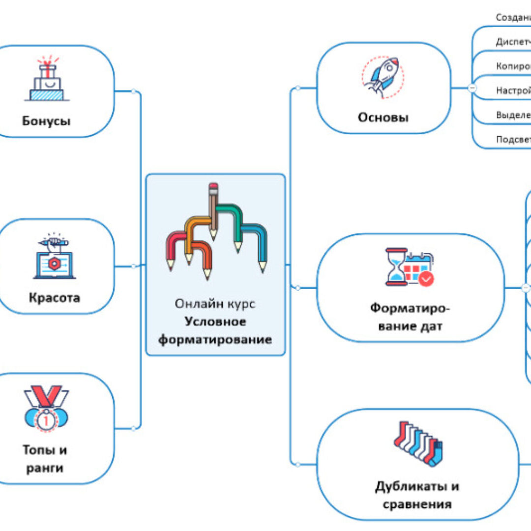 - Научитесь правильно применять все существующие типы условного форматирования для чисел, текста и дат.