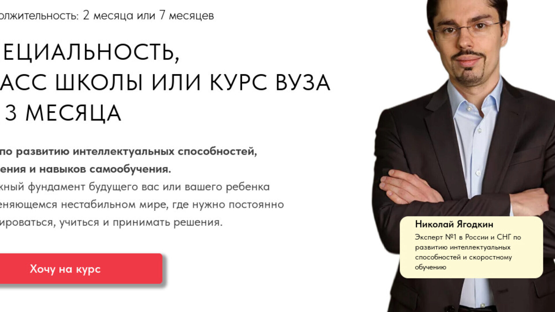 Николай Ягодкин «Специальность, класс школы или курс вуза на 3 месяца. Тариф Максимум» слив скачать