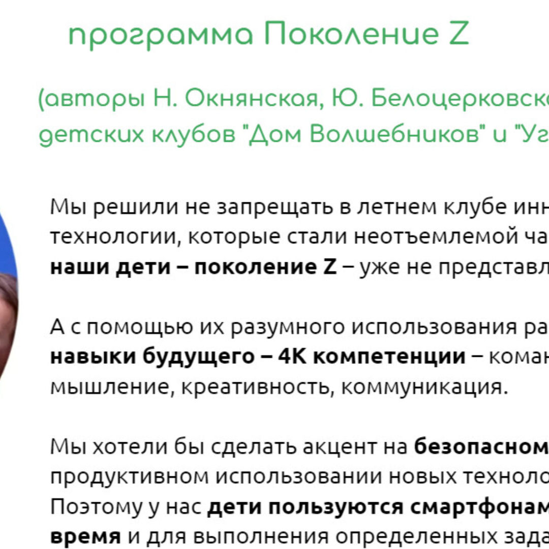 Отзывы о курсе Программа летнего лагеря «Поколение Z» от Нины Окнянской, Юлии Белоцерковской
