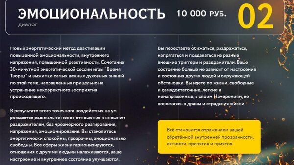 Энергетический диалог, созданный специально для активации потока изобилия в вашей жизни. Сочетание 30-минутной энергетической сессии игры «Время Творца» и выжимки самых важных духовных знаний по этой теме, направленных прицельно на устранение внутренних блоков и деструктивных программ ума в сфере