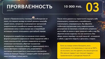Энергетический диалог, созданный специально для активации потока изобилия в вашей жизни. Сочетание 30-минутной энергетической сессии игры «Время Творца» и выжимки самых важных духовных знаний по этой теме, направленных прицельно на устранение внутренних блоков и деструктивных программ ума в сфере