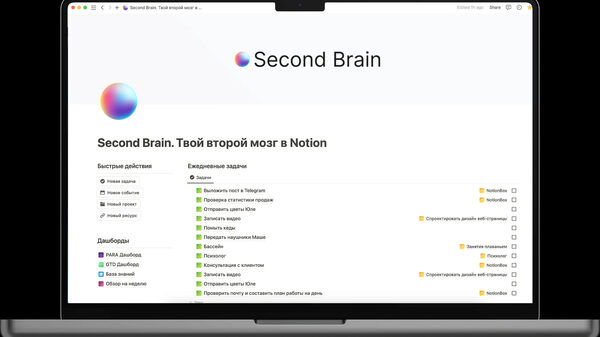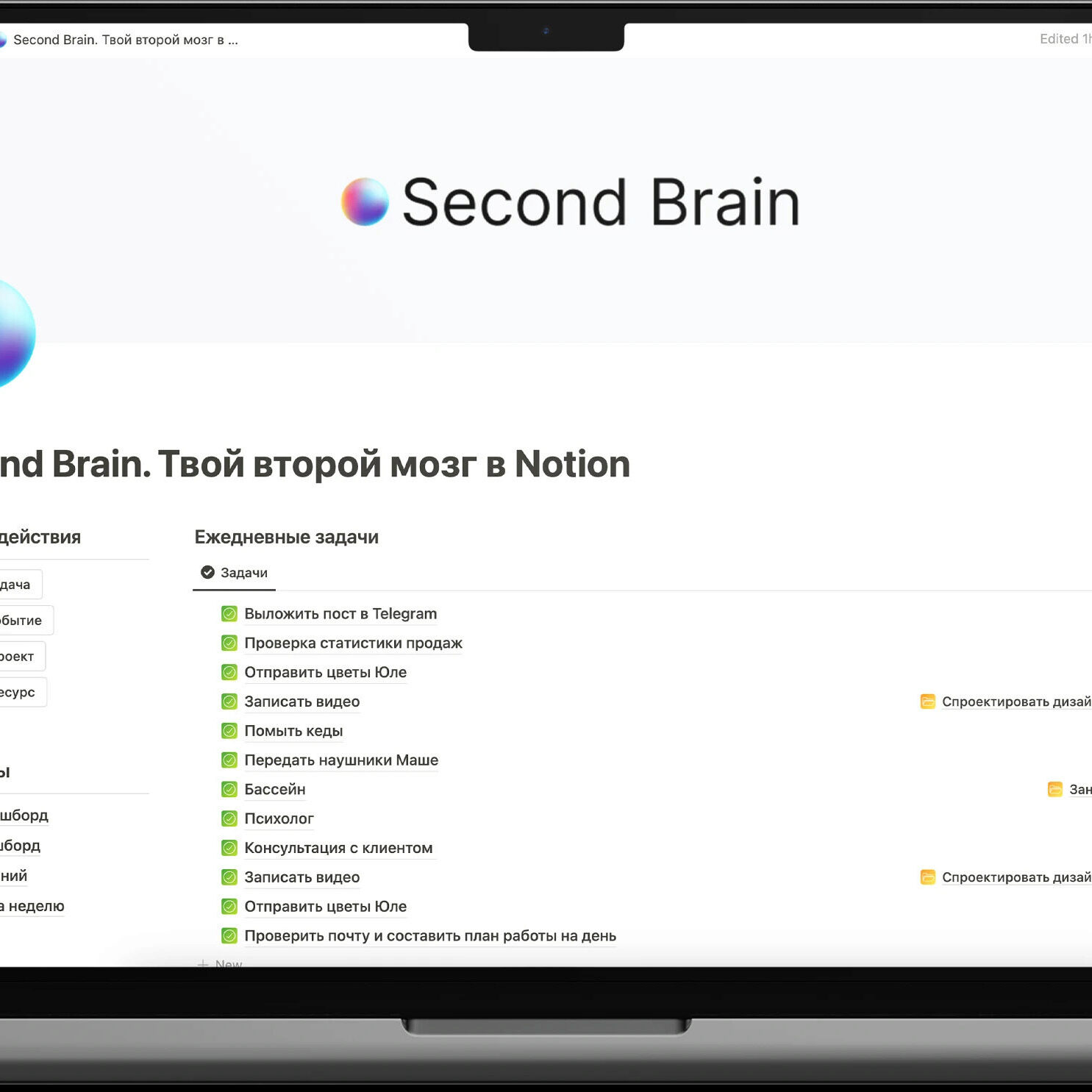 Что такое Second Brain by nooka Это система включающая в себя мою интерпретацию методов GTD и PARA, и автоматизацию процессов управления проектами и задачами, как личными так и рабочими Главная особенность Second Brain на основе Notion Одной из главных задач системы — освободить вашу память от