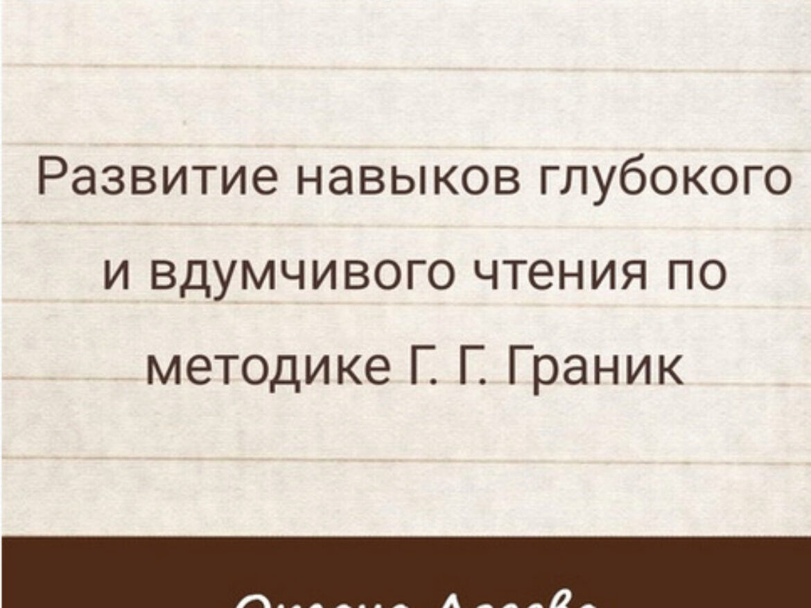Оксана Агеева «Развитие навыков глубокого и вдумчивого чтения по методике Г.Г. Граник» слив скачать