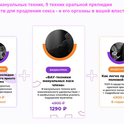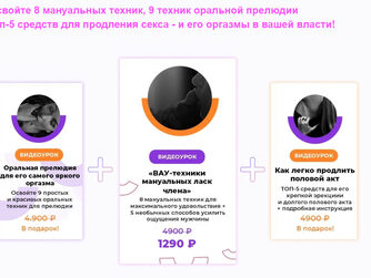Вводный блок Разбираем, что ждёт вас Блок 1. Оральный секс: Включает 28 уроков: Красота момента Положение тела в процессе Разбор основных ошибок и их решение 15 базовых техник 9 техник оральной прелюдии Блок 2. Глубокий горловой минет: Включает 13 уроков: Объяснение, почему это нравится Преодоление