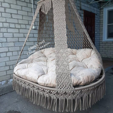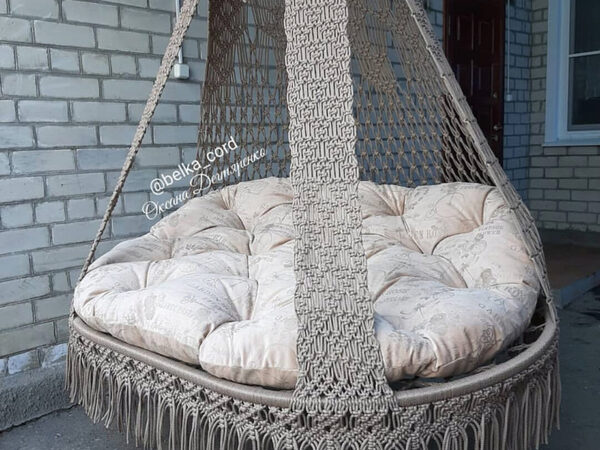 Вы можете сплести такую же качель сами по моему МК. МК вместе с описаниями двух видов подушек : со спинкой и без спинки Размер качели -70/90см.
