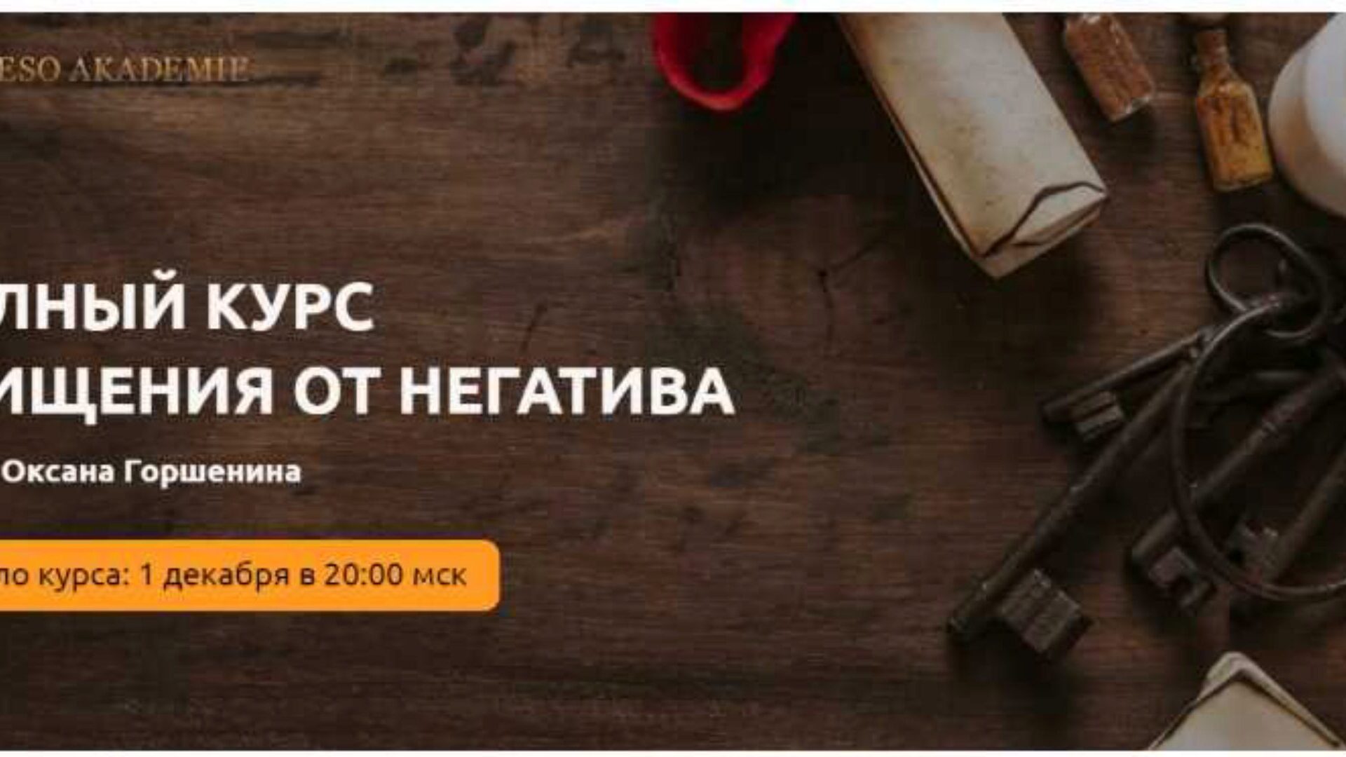 Полный курс очищения от негатива. Тариф Золото (Оксана Горшенина) Пройдя курс вы: Научитесь определять наличие и вид негативного воздействия; Выбирать оптимальный способ очищения в зависимости от имеющегося негатива на человеке; Снимать воздействия различного характера - порчи, сглазы, проклятья,