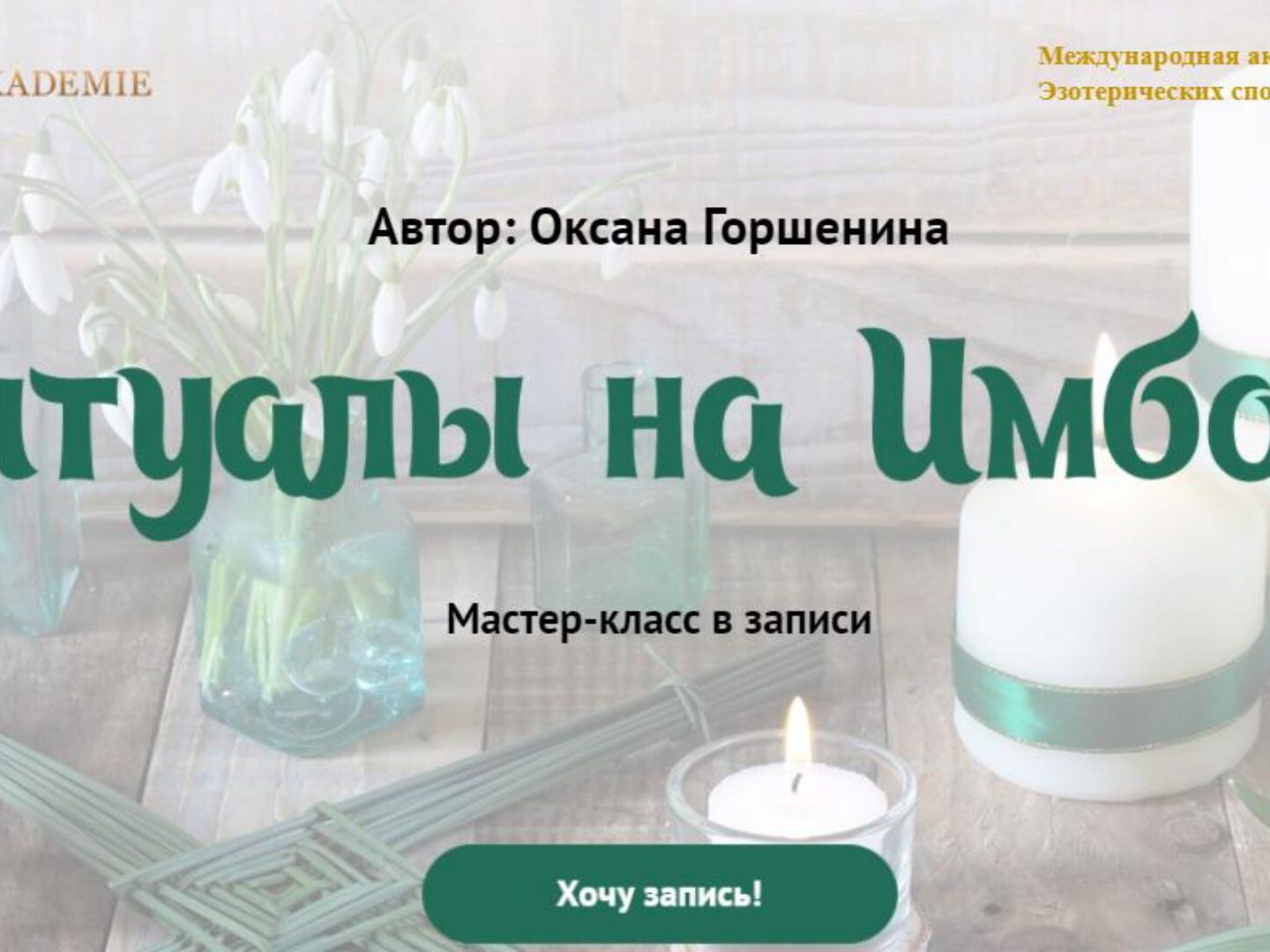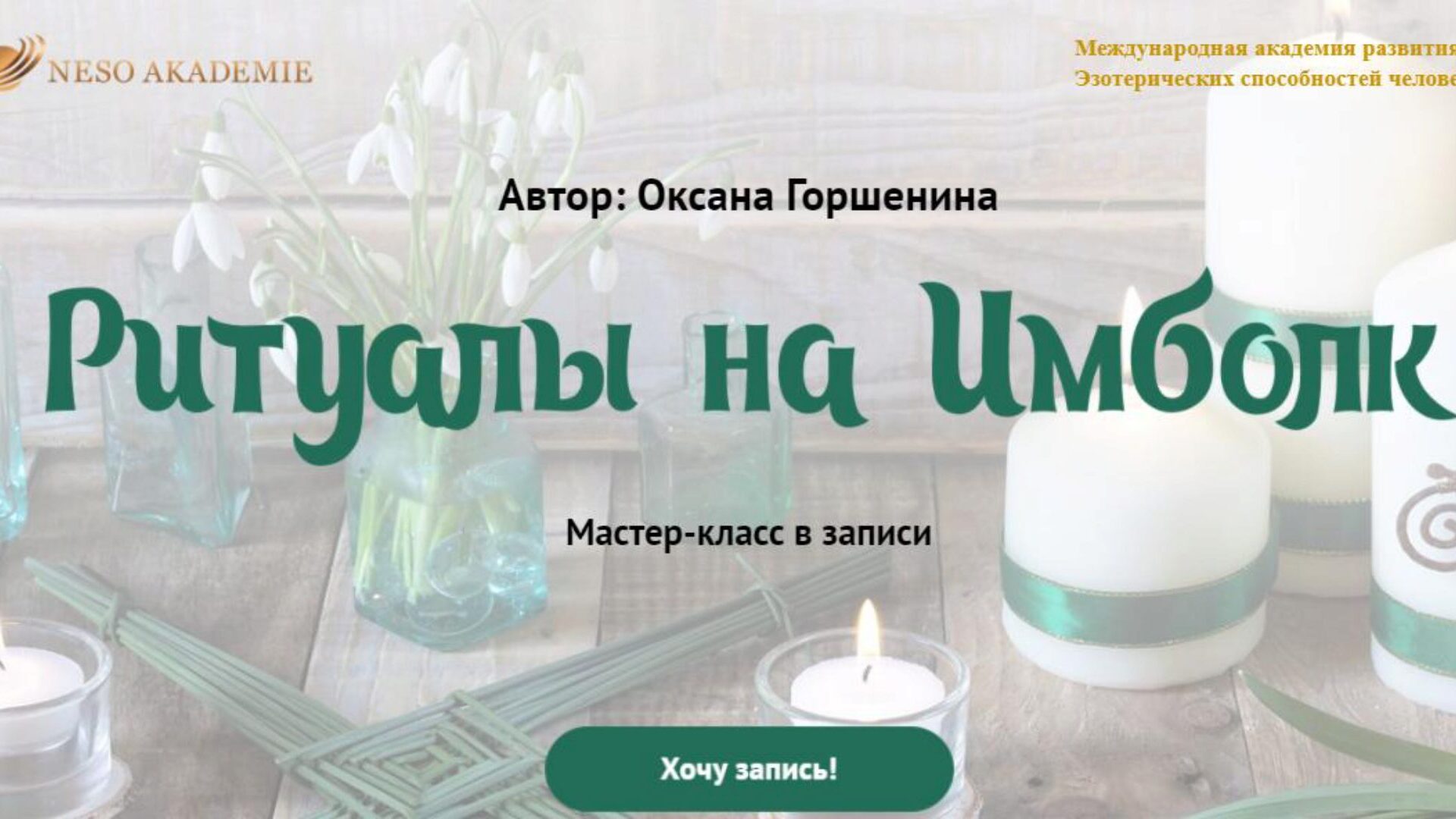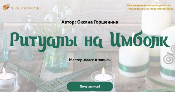 Курс Neso Akademie - Ритуалы на Имблок, автор Оксана Горшенина. Содержание мастер-класса