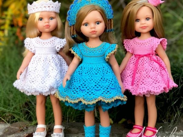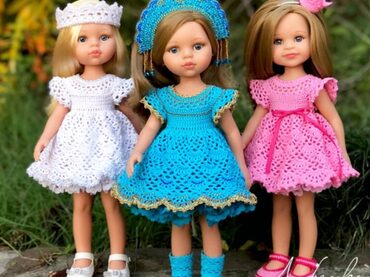 Описание в формате PDF, 14 страниц — подробное порядовое описание, больше 50 фото + схема для подола платья Костюм «Марина» состоит из трёх элементов, которые можно использовать комплектом или сочетать с другой кукольной одеждой. Модель платья универсальная и в то же время с изюминкой. Воздушный