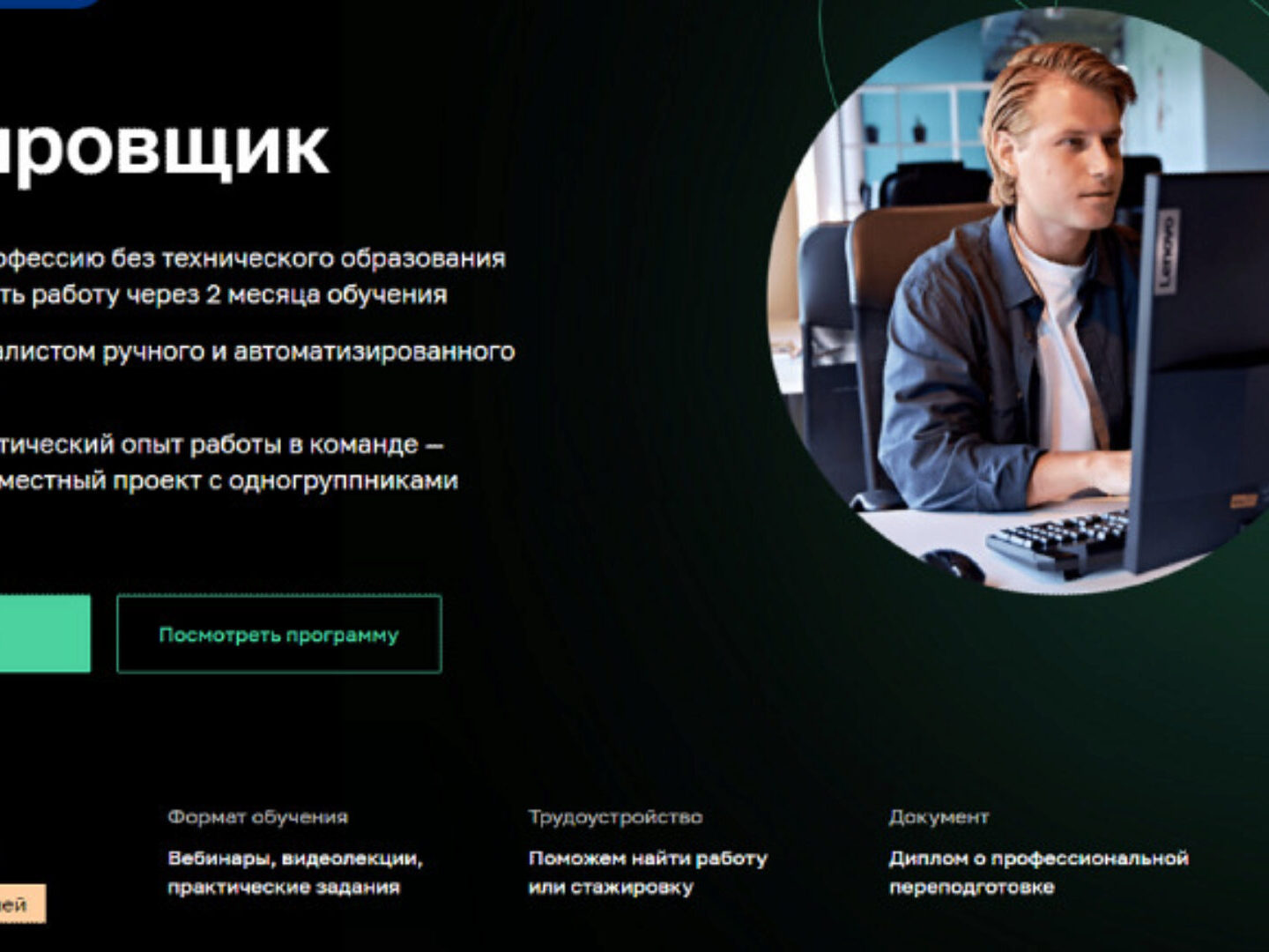 Освойте IT- профессию без технического образования и начните искать работу через 2 месяца обучения