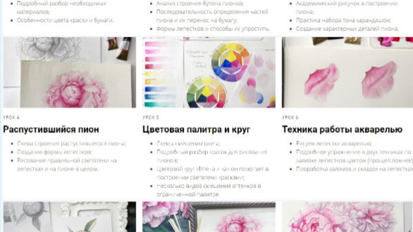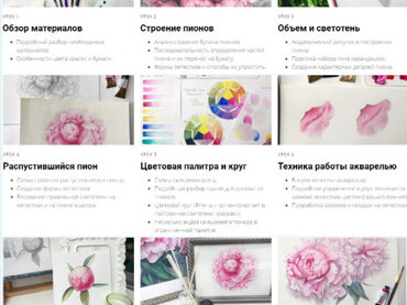 Розовые пионы акварелью Курс ведет Мария Павлова Тонкие, нежные, ароматные, роскошные, барочные, лечебные – это все про них, про легендарные пионы. О мастер-классе Научимся выстраивать композицию из нескольких однотипных объемов, создавать деликатный колорит, поговорим о цветах, оттенках,