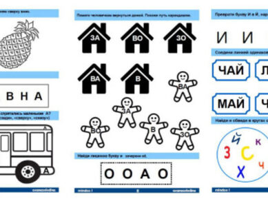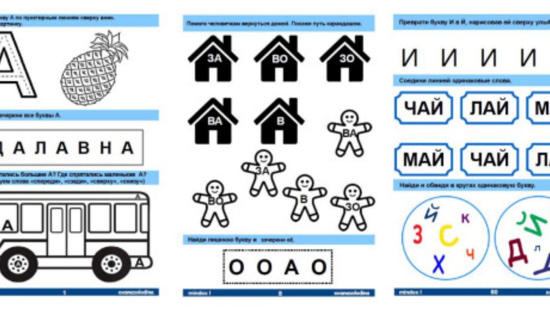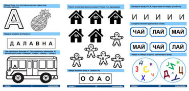 Упор на запоминание букв и чтение слогов; умение зрительно отличать буквенные сиволы; выполнять словесный инструкции.