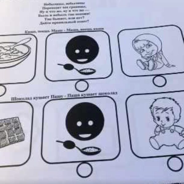 Материалом для автоматизации трудных звуков служат правильные предложения и предложения с неправильными формами слов (неправильными падежными окончаниями, предлогами, неверным согласованием прилагательного и существительного, глагола и существительного, неправильным употреблением возвратных глаголов, страдательных оборотов). Вначале ребенку дается инструкция: «Я буду говорить предложения. А ты внимательно послушай каждое предложение и повтори». Можно обыграть с помощью персонажа «ЗЛОЙ ВОЛШЕБНИК. КОЛДУН» («заколдовал» предложения)