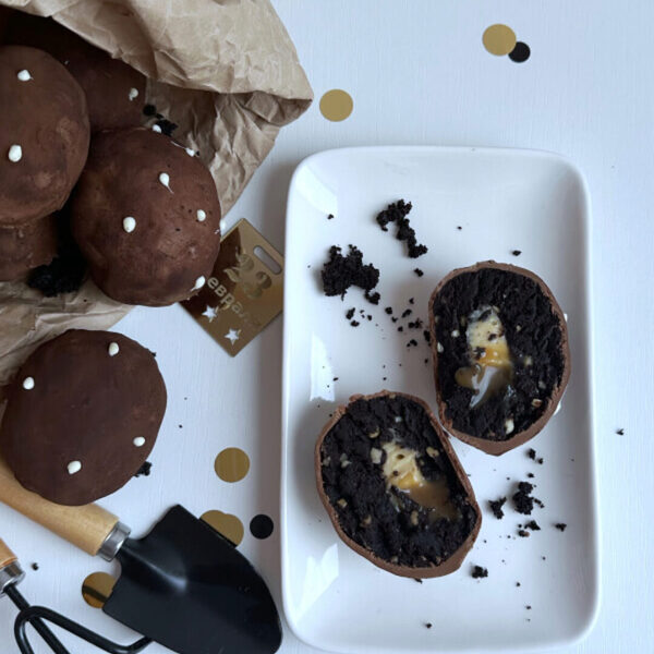 Пирожное «Картошка «Ферреро»: Сочный и насыщенный шоколадный бисквит Фундучный крем на основе молочного и темного шоколада Хрустящая начинка, как в той самой конфете Мягкая сливочная карамель без излишней приторной сладости (два способа приготовления) Идеальное покрытие на молочном шоколаде (без