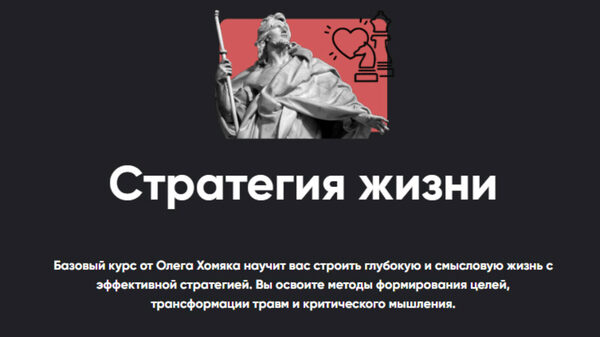 Базовый курс «Стратегия жизни» от эксперта в области психологии личности Олега Хомяка В эпоху, когда мимолетные тренды и поверхностные меры успеха заполонили нашу культуру, курс «Стратегия жизни», созданный психологом Олегом Хомяком, предлагает вам научиться строить жизнь, наполненную глубиной,