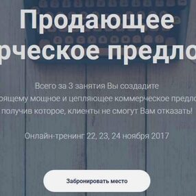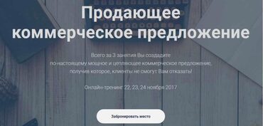 Всего за 3 занятия Вы создадите по-настоящему мощное и цепляющее коммерческое предложение, получив которое, клиенты не смогут Вам отказать!
