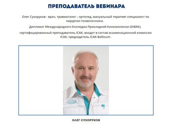 Экслюзивный материал по лигаментозным взаимосвязям от председателя ICAK и практикующего хирурга. Семинар состоит из трех частей. Первую часть ведет Дмитрий Кущик с повторением тестов и лигаментозных связей. Вторые две части ведет Олег Сухоруков, раскрывая подробности взаимосвязей и принцип работы.