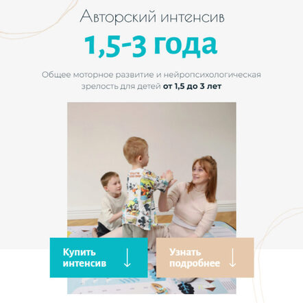 Этот интенсив - уникальное комбо двух самых важных сфер развития для детей от 1,5 до 3 лет - моторного и нейропсихологического.