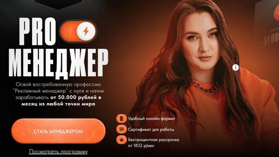 2 месяца, после которых ты добьешься результата и сможешь получить реальные деньги со своего первого клиента Модуль 1: Введение в профессию Модуль 2: Фундамент работы Модуль 3: Рекламные подачи Модуль 4: Менеджер по продвижению - пошаговый план закупки рекламы Модуль 5: PR-менеджера Модуль 6: Поиск