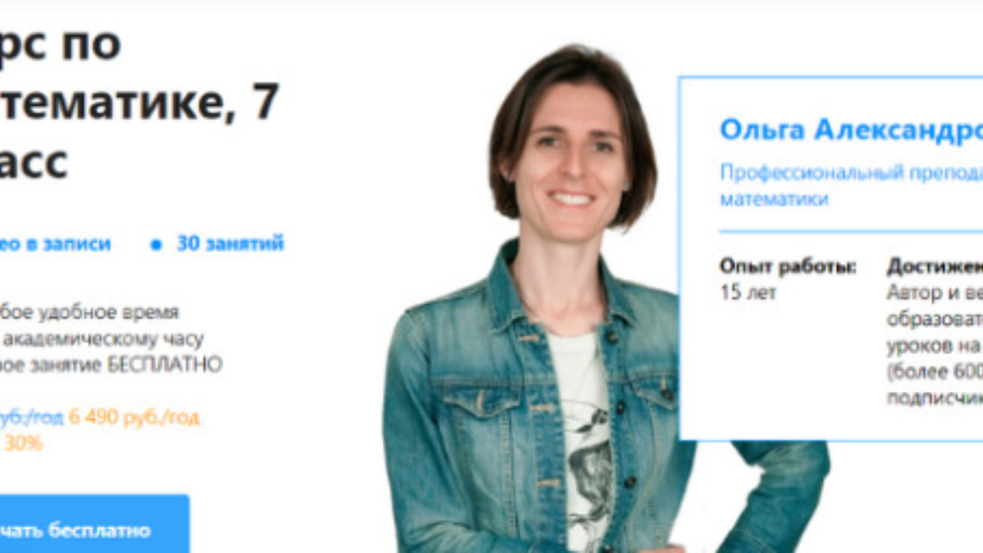 Ольга Александровна «Курс по математике 7 класс. Пакет на год» — TutorOnline слив скачать