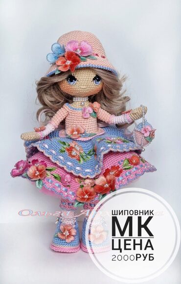 Курс Ежевичная Поляна - Кукла Шиповник, автор Ольга Архипова. Вязаная кукла с элементами вышивки, материал в формате ПДФ.