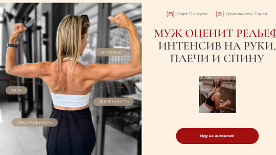Курс Муж оценит рельеф. Интенсив на руки, плечи и спину 7 дней -7 тренировок, автор Ольга Байкина. 7 дней интенсива – 7 тренировок