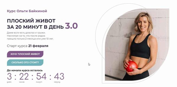 Ольга Байкина «Плоский живот за 20 минут в день 3.0 2022» слив скачать