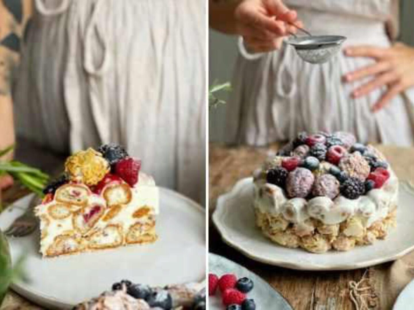 Моника Легендарный торт Мой самый известный и популярный торт. Он был востребован среди моих заказчиков и среди девочек, кто приходил на живые мастер классы. Сливочный бисквит Сырно-сливочный крем Сливочная пропитка Соленая карамель Лимонный курд Клубника