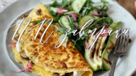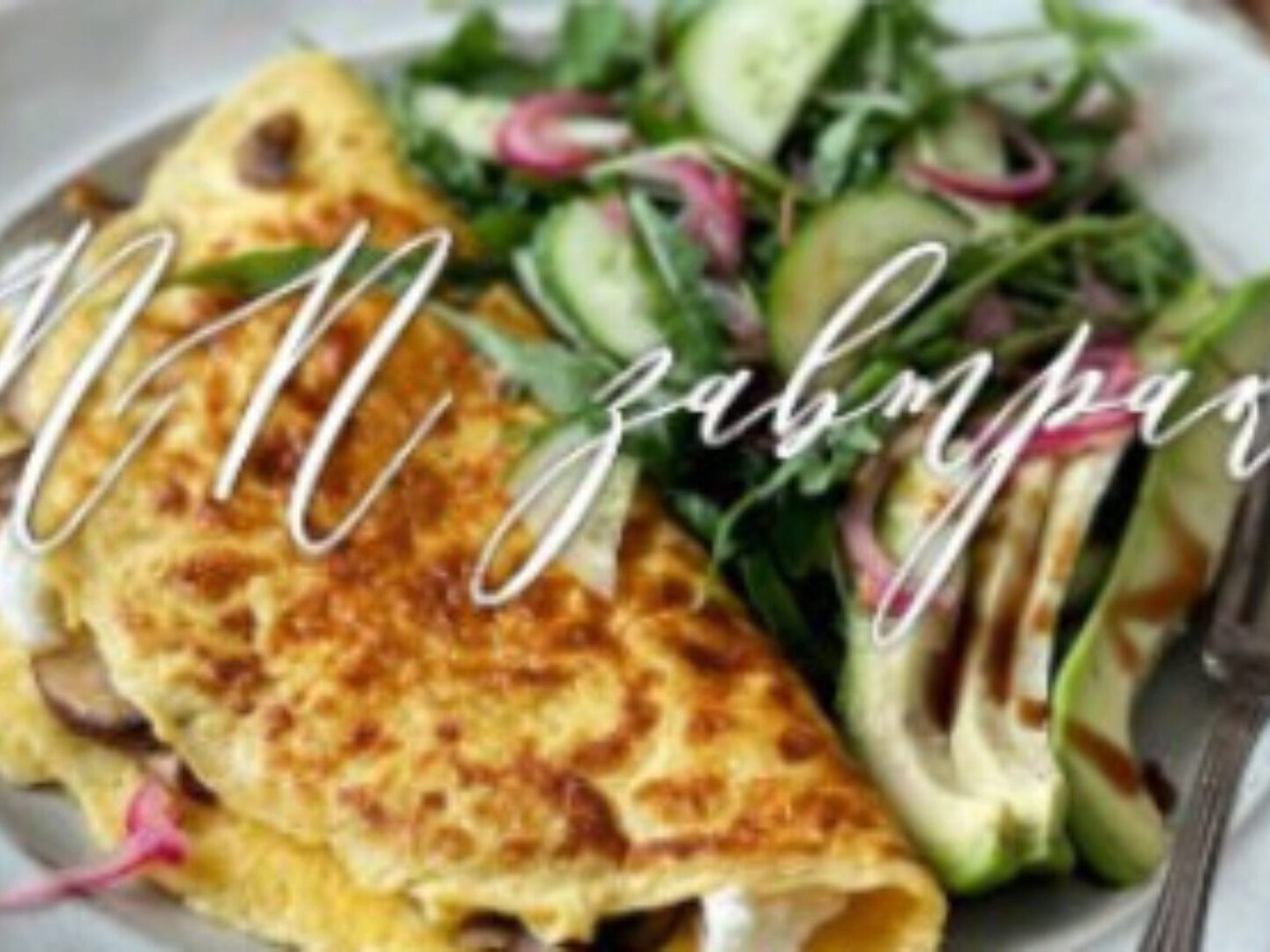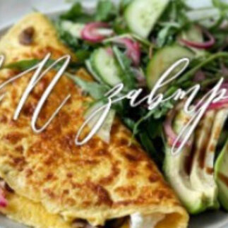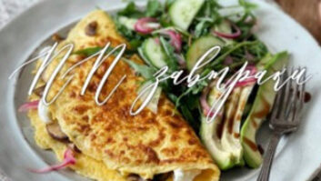 13. Лёгкий омлет с грибами, сыром и зеленым салатом