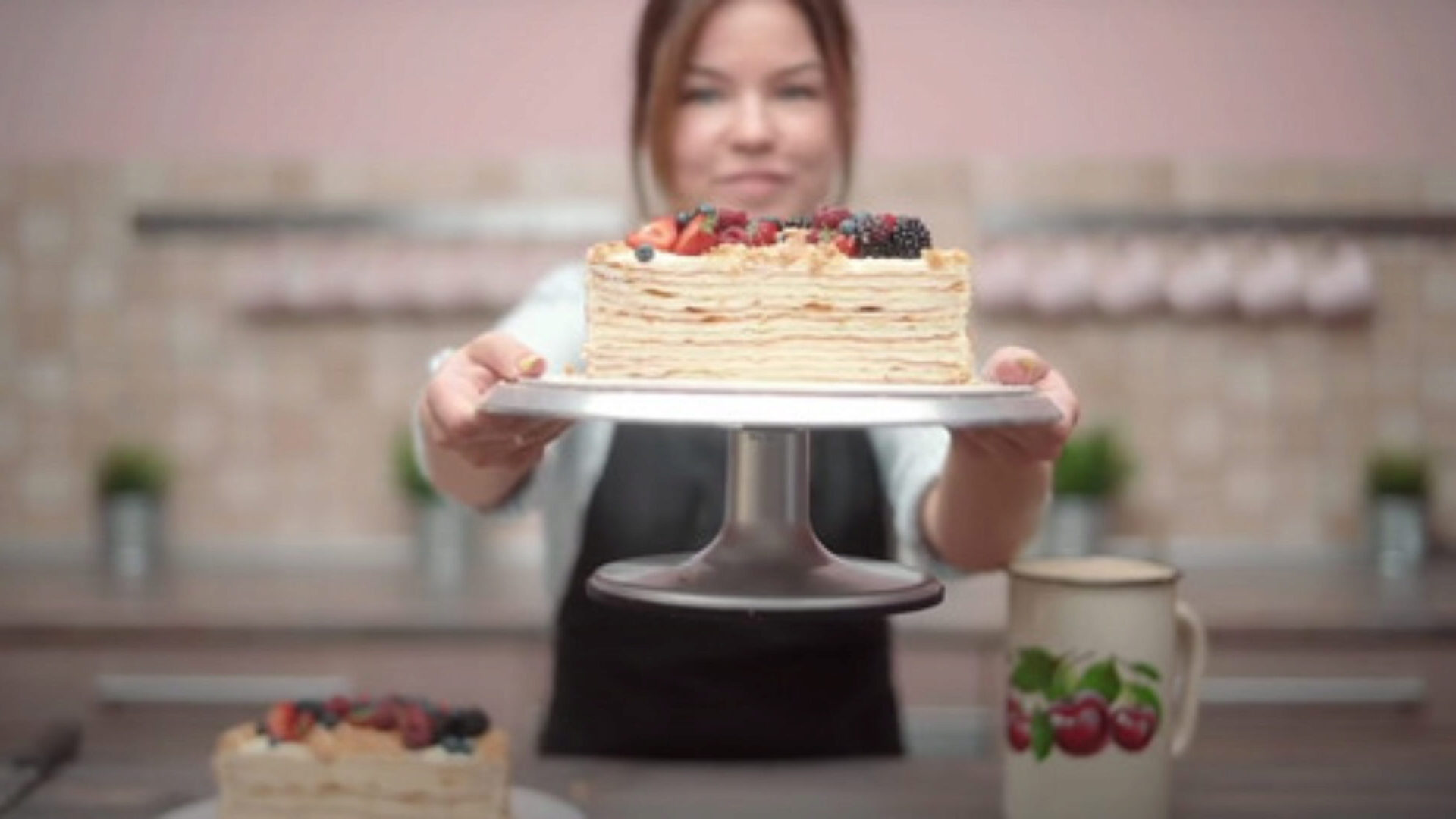 Видео в высоком разрешении с подробным приготовлением, декором и разрезанием торта
