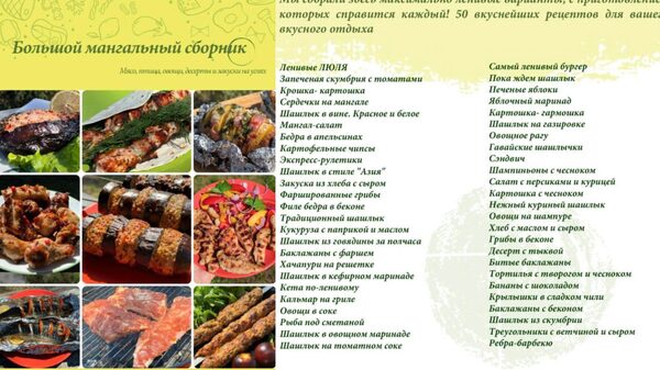 Сборник включает в себя и абсолютно новые варианты, и полюбившиеся вам рецепты из ранее доступных сборников «Маринады для шашлыка» и «Не шашлык». Удобно, когда все в одном месте и всегда под рукой
