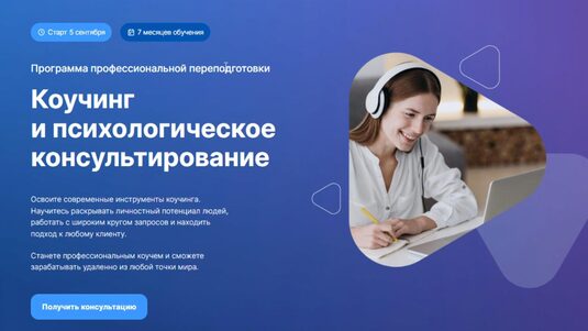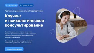Обучающая программа «Психологическое консультирование и коучинг» 3.0 Освоите современные инструменты коучинга. Научитесь раскрывать личностный потенциал людей, работать с широким кругом запросов и находить подход к любому клиенту. Станете профессиональным коучем и сможете зарабатывать удаленно из