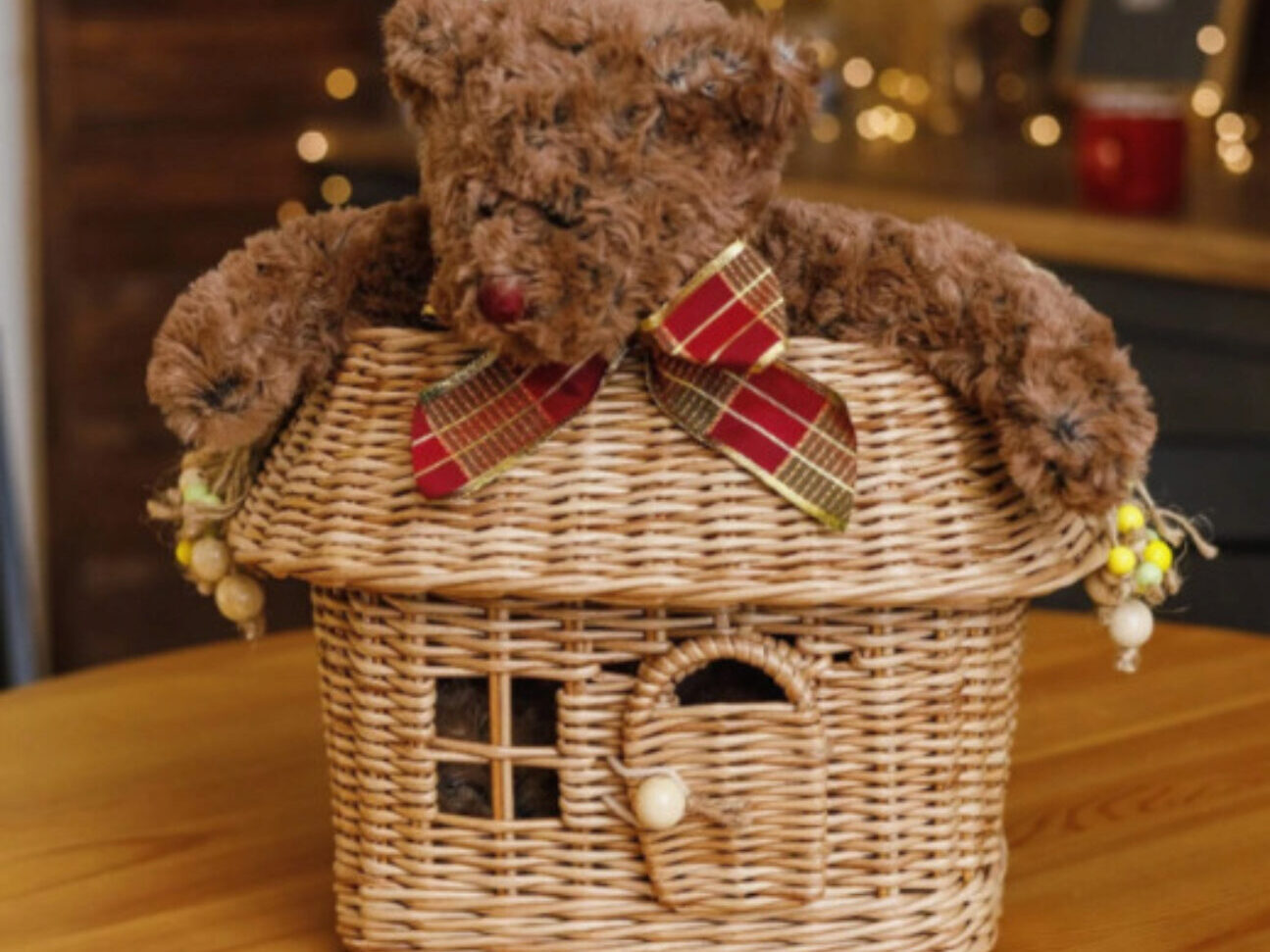 «Корзина-домик с деревянной ручкой»