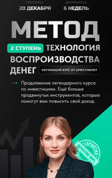 [Pro.finansy] Метод. 1 ступень. Технология воспроизводства денег. Тариф Всё Сам Начните свой путь к финансовой устойчивости и свободе прямо сейчас. Курс Вам подходит если: Думаете, что начать инвестировать с 1 000 рублей в кармане нереально. Хотите избавиться от долгов и кредитов и больше никогда о